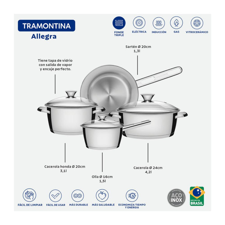 Juego de Ollas Tramontina de 5 Piezas Acero Inoxidable
