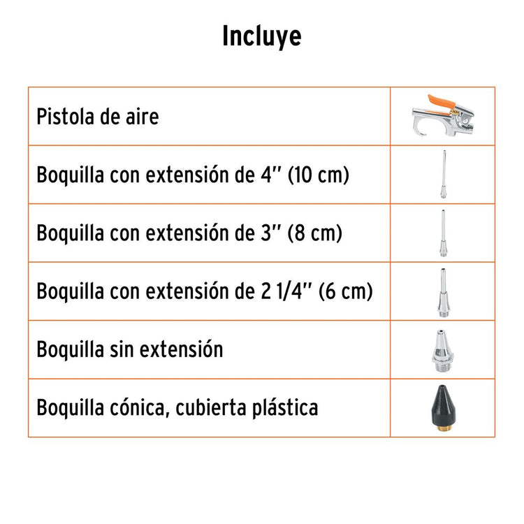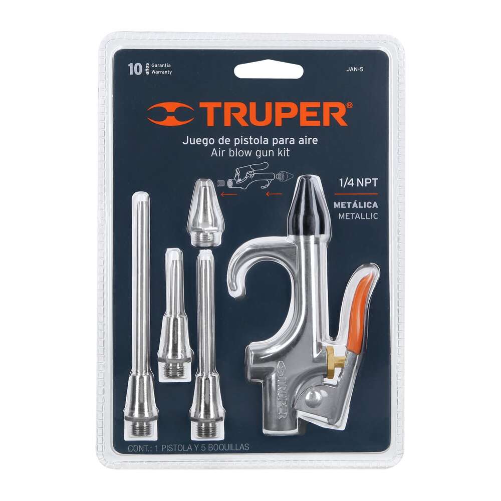 Juego de Pistola Truper con 5 boquillas para Compresor de Aire