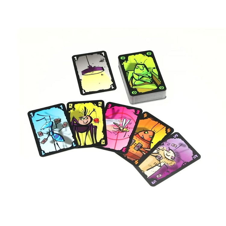 Polilla tramposa es un juego de rapidez y trampas en el que intentarás deshacerte de todas las cartas de tu mano para ganar. Empieza la partida barajando las cartas y repartiéndolas a todos los jugadores. Colocas el resto de cartas boca abajo en una pila en medio de la mesa, dando la vuelta a una de ellas. ¡Y ya está el set up desplegado sobre la mesa y todo listo para jugar!