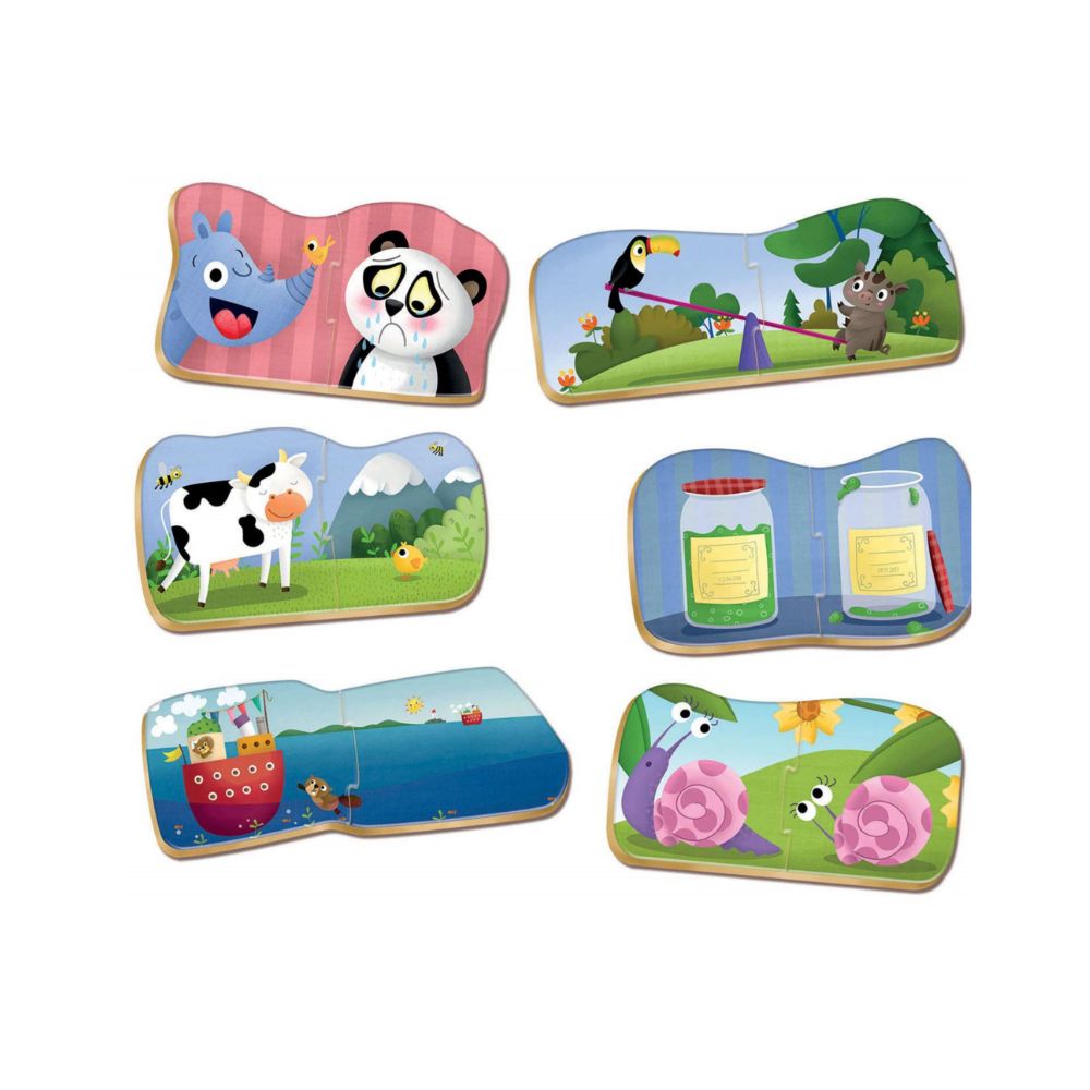 Este juguete es ideal para descubrir los conceptos contrarios y que tu niño asocie imágenes cuyos conceptos son contrarios y aprenderá a identificar los opuestos