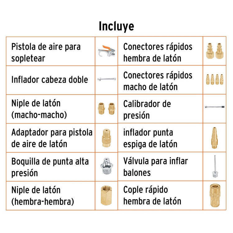 Un Juego para Compresor de Aire Truper de 17 piezas es un producto que te ofrece todo lo que necesitas para realizar diversas tareas con tu compresor de aire!