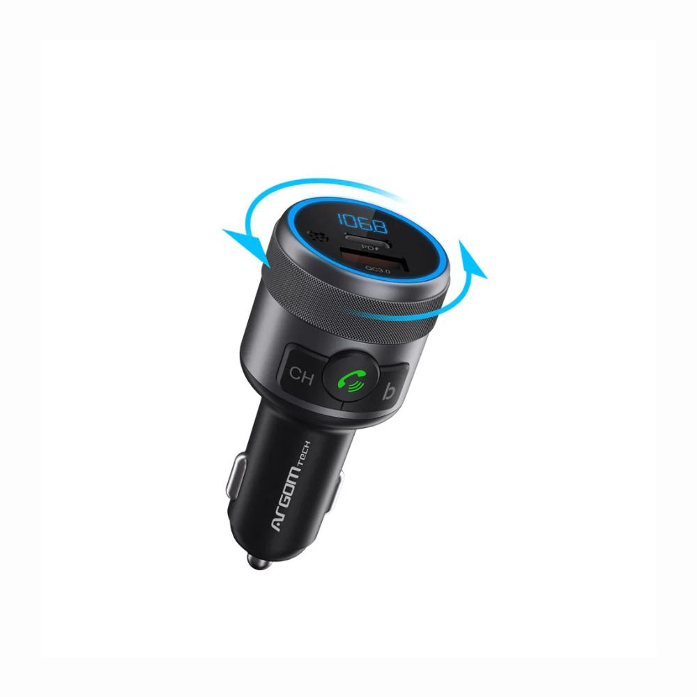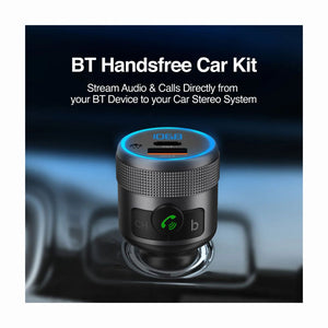 Transmita música y llamadas por Bluetooth (V5.1) al sistema de sonido del vehículo. Incluye dos puertos de carga rápida (PD 24W y QC3.0 18W) con salida total de 42W. Alcance Bluetooth de 8 metros y pantalla LED compacta. Entrada 12-24V, diseño en aluminio y ABS, dimensiones 8 x 3,5