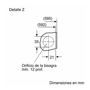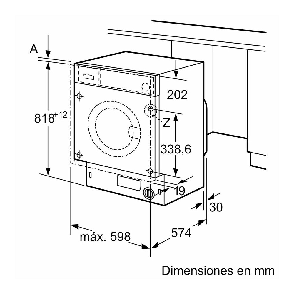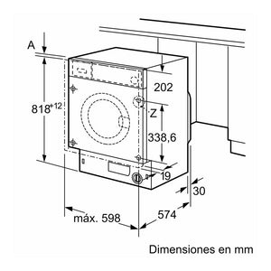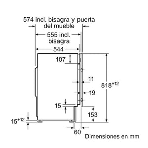 - Dimensiones del aparato: alto x ancho x fondo (sin puerta): 818 x 596 x 544 mm