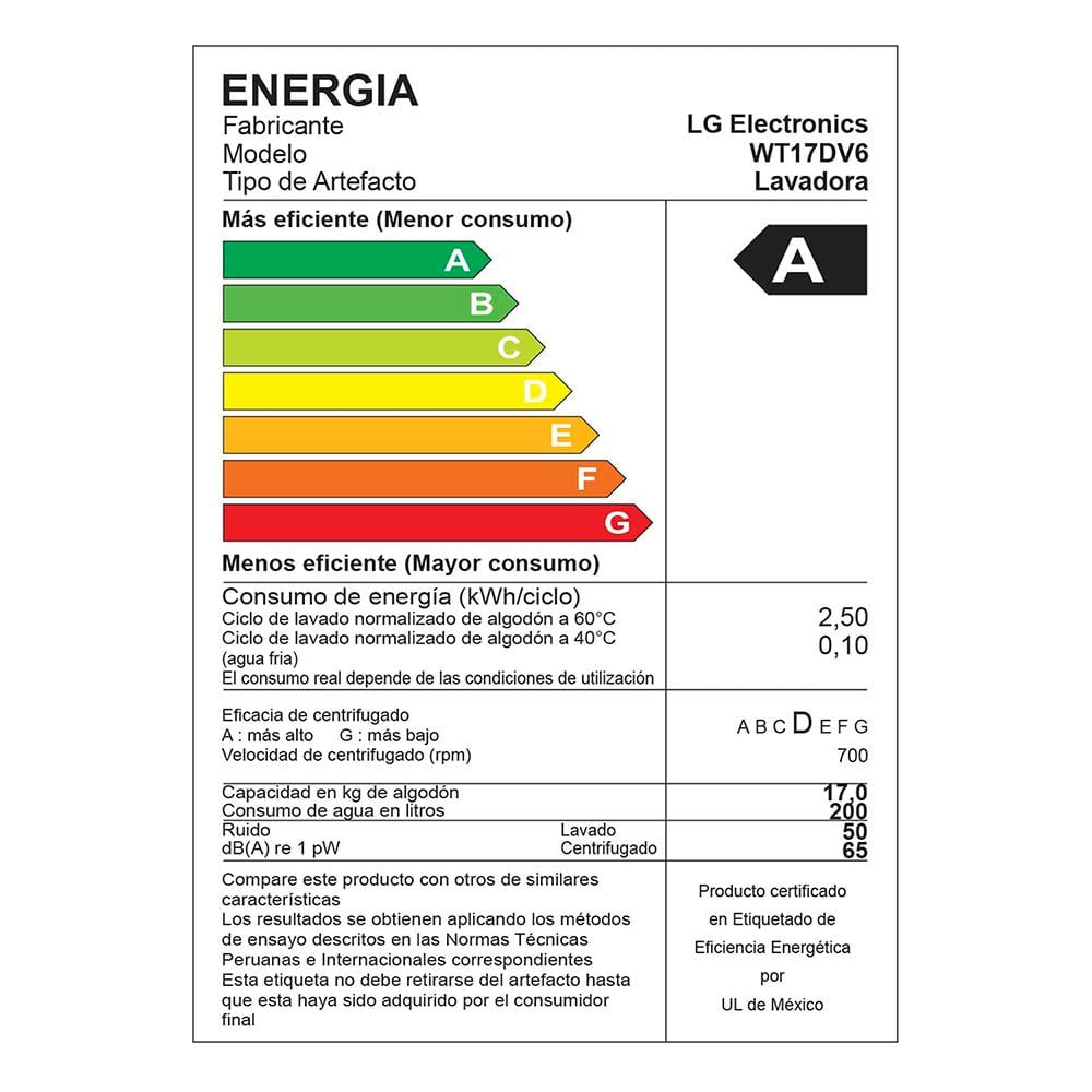 Lavadora LG WT17DV6 de 17 kg Color Gris