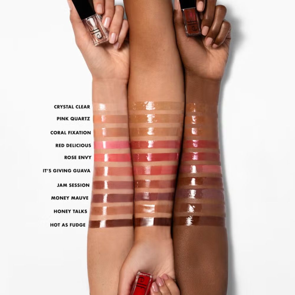 - Aceite labial hidratante y no pegajoso con acabado de alto brillo.