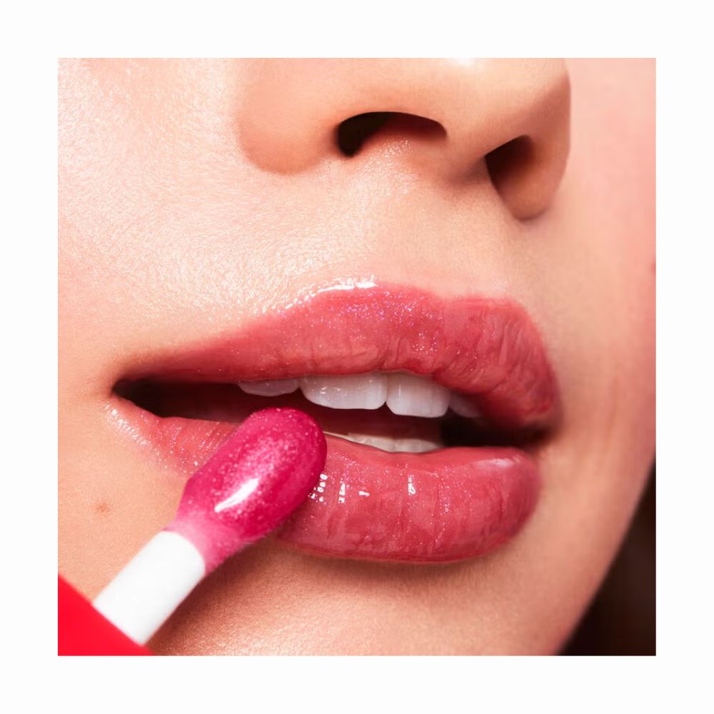 - El aceite labial de edición limitada cubre los labios con un toque transparente de rosa y un brillo sutil.