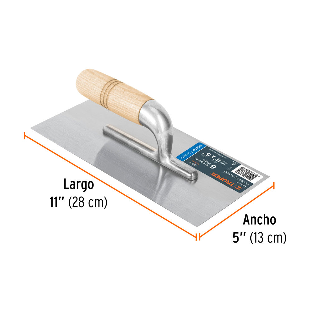 La hoja de acero templado de 11 pulgadas presenta un canto recto que facilita la aplicación uniforme y suave del mortero, el yeso u otros materiales de revestimiento. Los 6 remaches garantizan una conexión sólida entre la hoja y el mango, lo que proporciona una mayor durabilidad y resistencia a lo largo del tiempo.