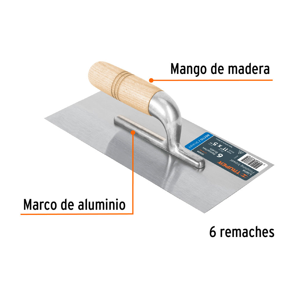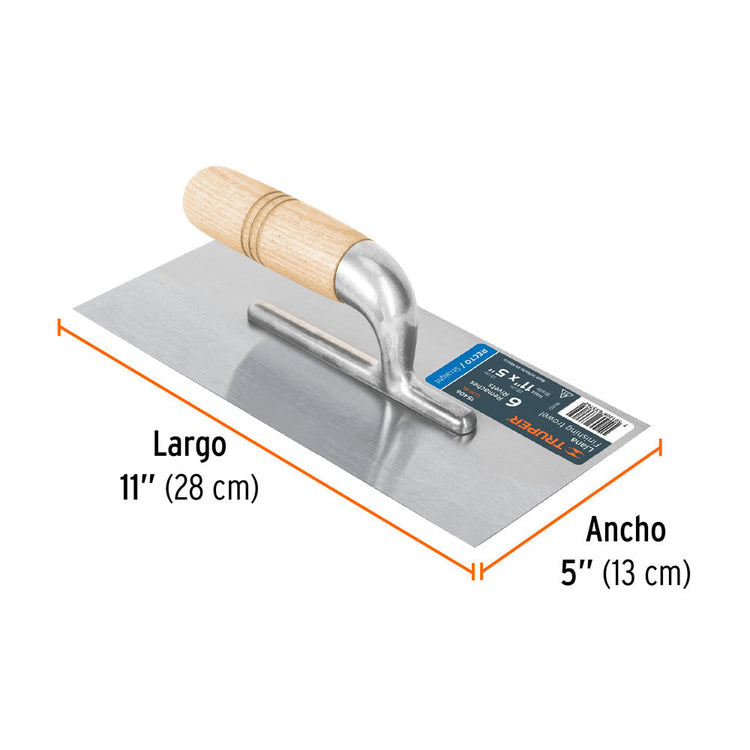 La llana canto recto Truper de 11" con 6 remaches y mango de madera es una herramienta imprescindible para cualquier proyecto de albañilería o construcción. Con su diseño robusto y duradero, esta llana está diseñada para proporcionar un rendimiento óptimo y resultados de alta calidad en cada trabajo.
