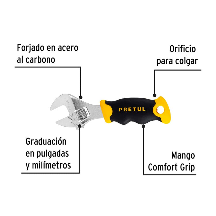 Optimiza tus labores con la Llave Crescent Pretul de 5", un instrumento confiable que combina funcionalidad y confort. Dotada de un revestimiento cromado resistente a la corrosión y un mango con grip ergonómico, garantiza un agarre seguro y cómodo. Esta llave te brinda la precisión necesaria para tus ajustes, convirtiéndola en una herramienta indispensable en tu kit de trabajo.