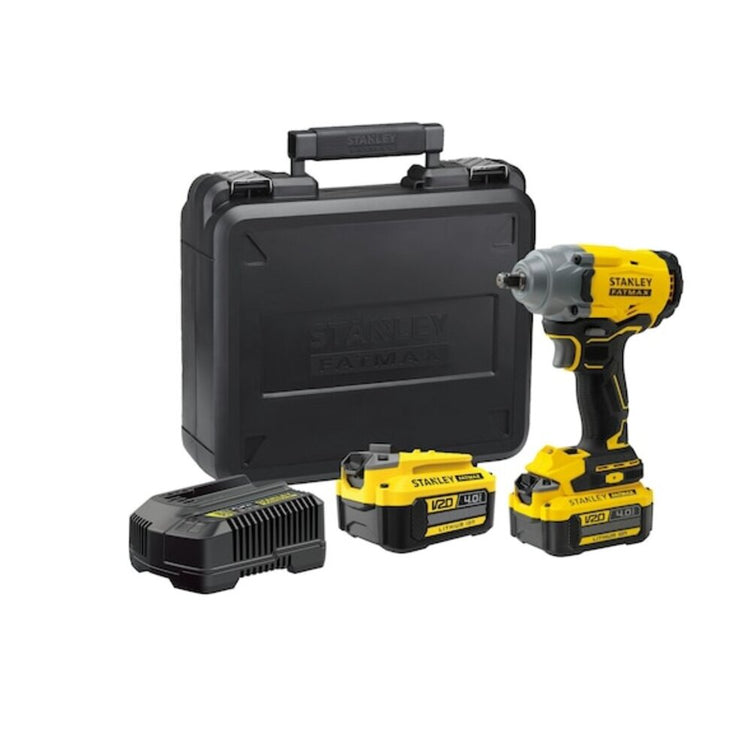 Llave de impacto inalámbrica Stanley ½ " 20V sin carbones +2 baterías 4 Ah + cargador 2 A + maleta