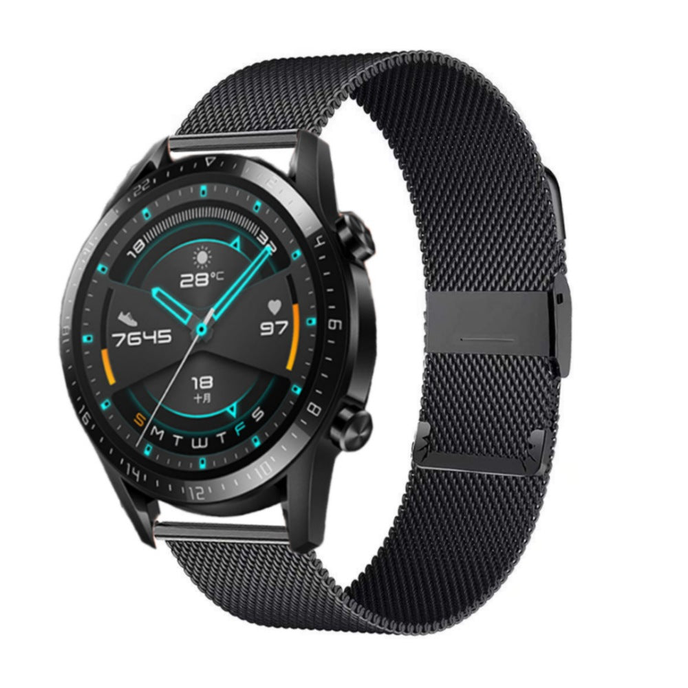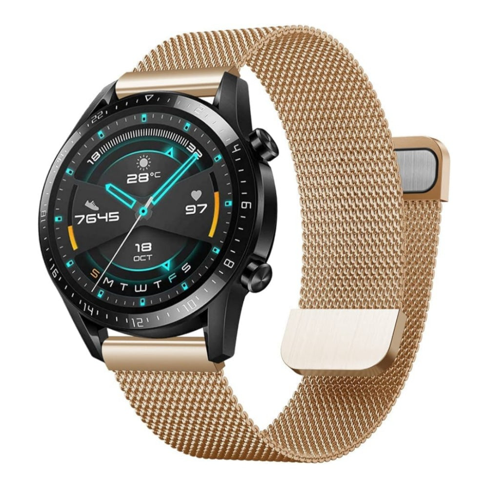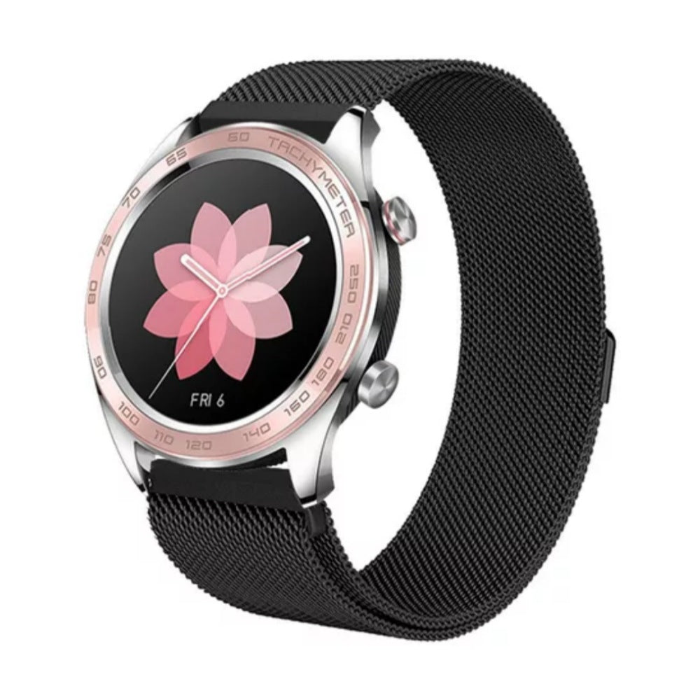 Esta manilla es compatible con la mayoría de los modelos de relojes inteligentes, y está hecha de metal de alta calidad, con un diseño que combina con cualquier estilo. Además, tiene un cierre magnético que se adapta fácilmente a tu muñeca y te brinda mayor seguridad.