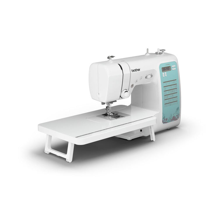 Máquina de coser digitalizada ligera, portatil y resistente de 60 puntadas para elegir entre decorativas, acolchados, utilitarias y de fantasía, además cuenta con 7 diferentes tipos de ojales a un solo paso. LA CS6000XL facilita proyectos de moda textil, decoración o artesanía gracias a su mesa de extensión que brinda un mayor espacio de trabajo. Crea proyecos únicos con sus 11 prensatelas incluídos