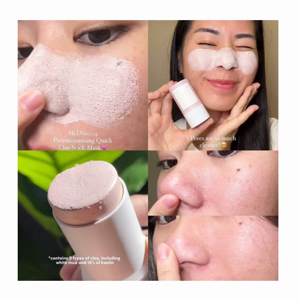 - Una máscara en barra suave con 4 tipos de arcilla (18% de caolín) y fino polvo de frijol rojo para absorber el exceso de sebo y reducir los poros dilatados.