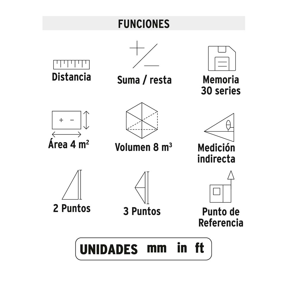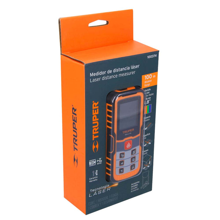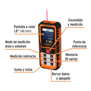 Este medidor láser de Truper es una herramienta versátil y precisa para medir distancias con rapidez y precisión. Es ideal para proyectos de construcción, carpintería, decoración, jardinería y mucho más.