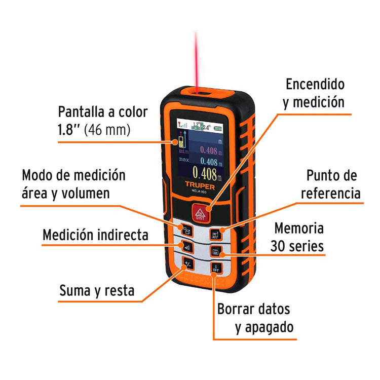 Medidor Láser de Distancia Truper de 0.05m a 100m
