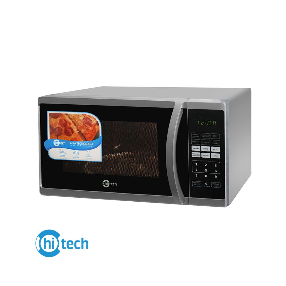El Microondas HiTech es la opción ideal para quienes buscan comodidad y tecnología en un solo electrodoméstico. Con 27 litros de capacidad y un diseño elegante en color plateado, este microondas cuenta con seis menús de cocina preestablecidos para facilitarte la preparación de tus platos favoritos. Su plato giratorio de cristal y grill teflonado ofrecen una cocción uniforme, mientras que el panel digital te proporciona control total y facilidad de uso.
