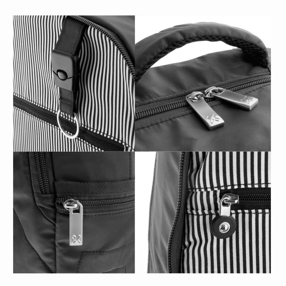 Diseñada para hacerle frente a los desafíos de tus actividades diarias, la mochila para laptop KNB-426 de KlipXtreme te ofrece un estilo funcional y moderno al mismo tiempo. Al contar con dos amplios compartimientos principales es ideal para acomodar una laptop de hasta 15,6 pulgadas, junto con una tableta, documentos y todos aquellos artículos esenciales para la jornada. El organizador multifuncional interno y el bolsillo con cierre brindan fácil acceso y mayor seguridad a tus pertenencias. Los cuatro bolsillos laterales, dos de los cuales tienen cierre, ofrecen capacidad de almacenamiento adicional, y el llavero removible permite que cargues tus llaves con total confianza. La mochila combina tiradores de metal, un asa ultra acolchada y tirantes para los hombros ajustables con un panel posterior ergonómicamente acolchado, lo que la hace ideal para usarla todos los días.