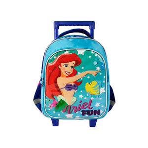 Esta mochila tiene un diseño precioso y elegante, con la imagen de Ariel, la sirenita más encantadora de Disney. Además, tiene un trolley extraíble, que le permite llevar la mochila con facilidad y sin cargar la espalda. La mochila tiene un compartimento principal espacioso, un bolsillo frontal con cremallera, y dos bolsillos laterales de malla. También tiene correas acolchadas y ajustables, y un asa superior. La mochila está fabricada con material de calidad y fácil de limpiar.