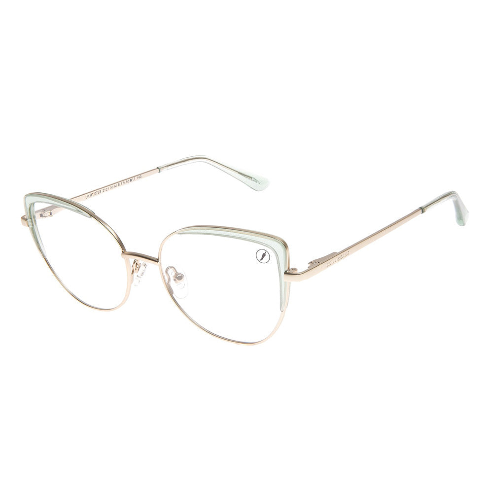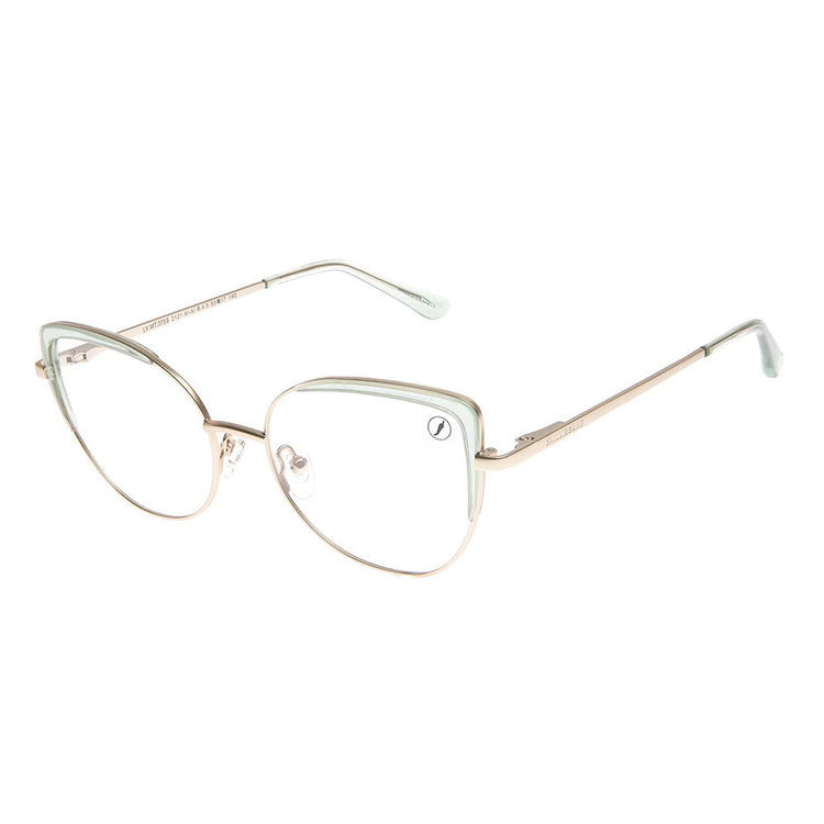 Fabricado en acero inoxidable que es un material resistente a la corrosión con condiciones de adaptabilidad. Puente recto con soporte nasal incorporado, que garantiza una fijación óptima. Tallos con la firma Chilli Beans.