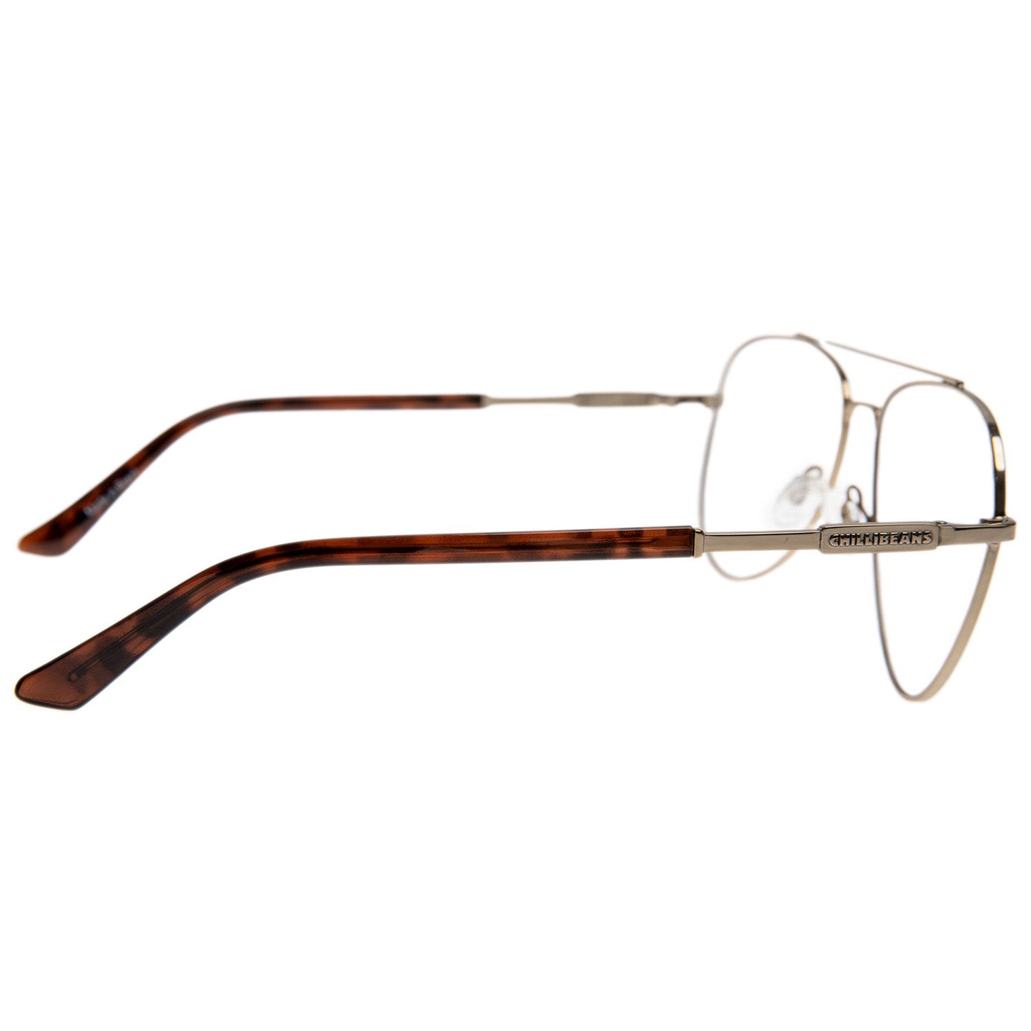 Fabricado con un material resistente a la corrosión con condiciones de adaptabilidad. Puente recto con soporte nasal incorporado, que garantiza una fijación óptima. Tallos con la firma Chilli Beans.