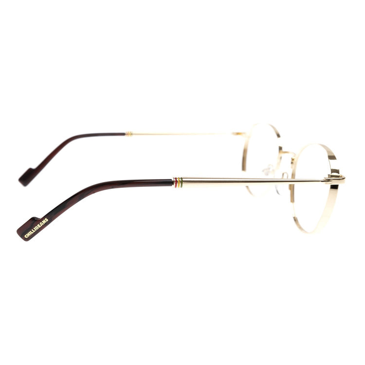Fabricado en acero inoxidable que es un material resistente a la corrosión con condiciones de adaptabilidad. Puente recto con soporte nasal incorporado, que garantiza una fijación óptima. Tallos con la firma Chilli Beans.