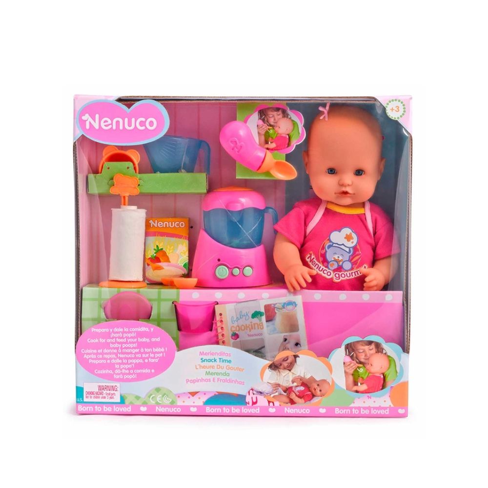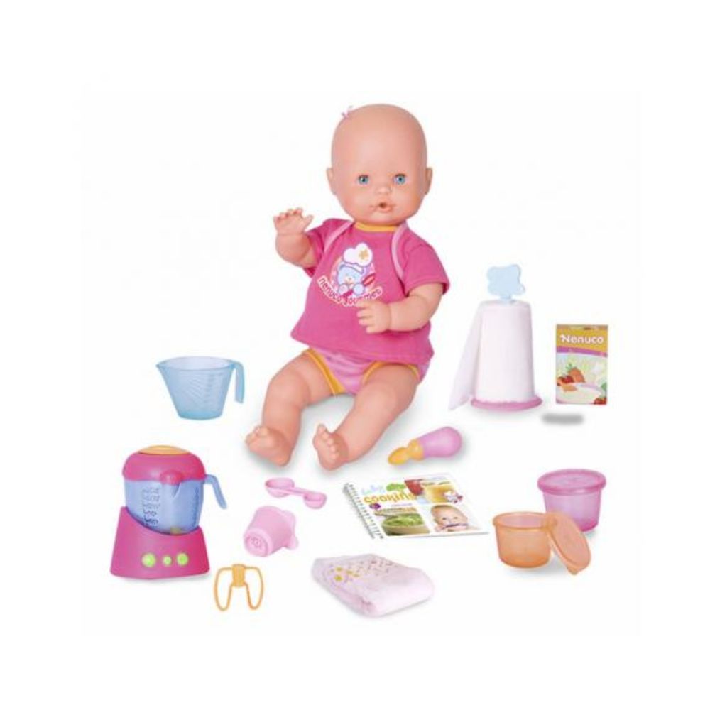 Ayuda a tu pequeña a imaginar y recrear divertidas historias con el Nenuco Merienditas. El bebé está hambriento, por eso hay que alimentarlo y cuidarlo, motivo para que tu y tu niña le den de comer y le enseñes como cuidar de el. Este muñeco es perfecto para fomentar la imaginación y estimular la libre expresión de sentimientos. Incluye: utensilios de cocina que te permitirán preparar buenas comidas, para después cambiarlo y darle las buenas noches.