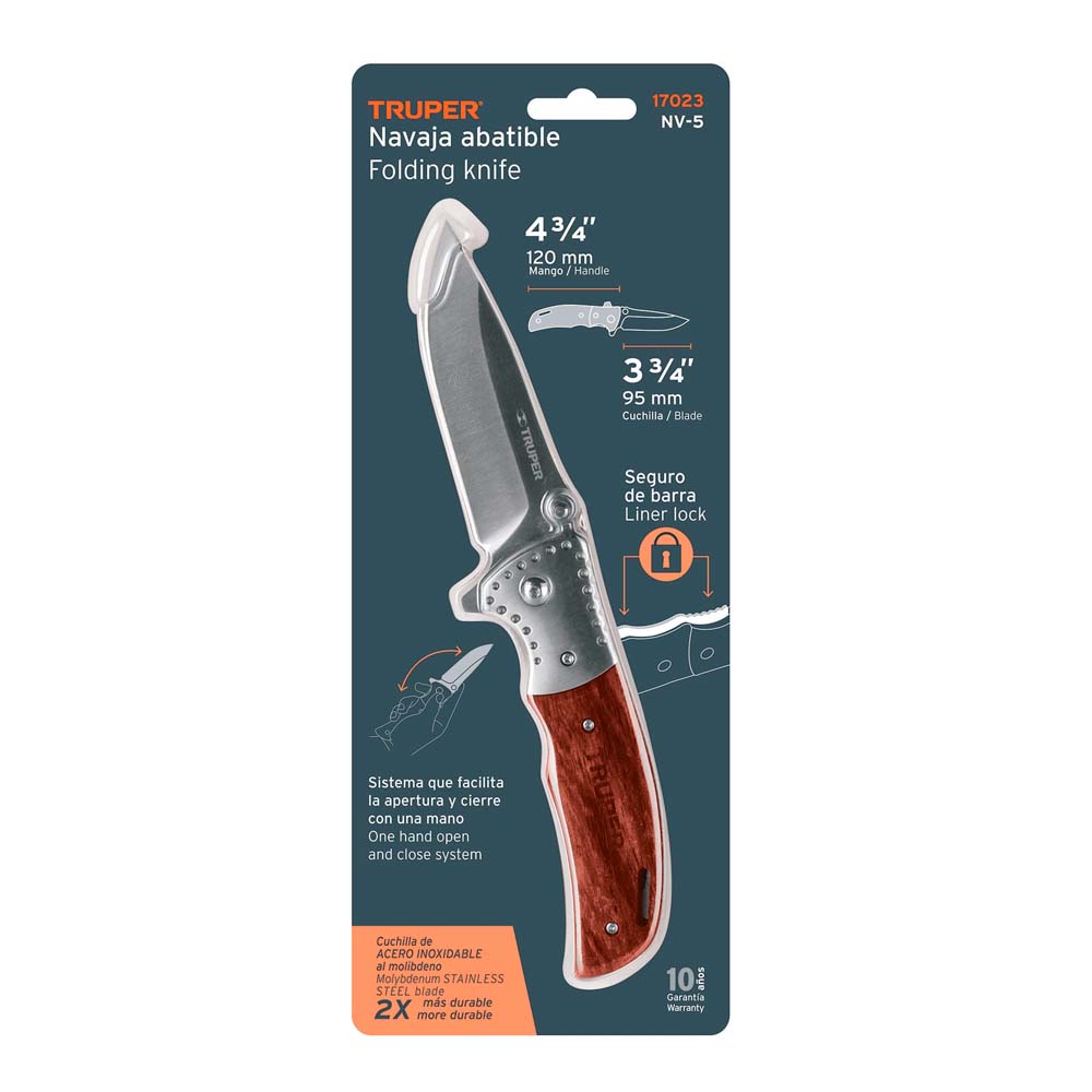 Navaja Truper Abatible 4-3/4 Mango de Madera