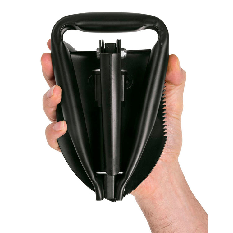- Versátil y Multifuncional: Combina en una sola herramienta una pala, pico, azadón y sierra. Preparada para cualquier tarea, desde cavar hasta cortar.