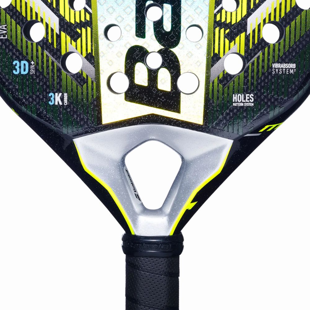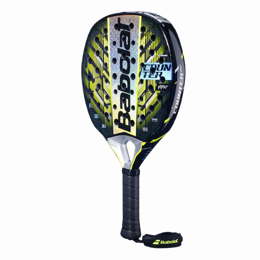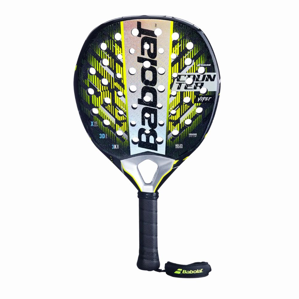 Pala híbrida con balance alto ideal para una potencia explosiva Babolat Counter Viper 2025. Con construcción de Carbono 3K y núcleo Multi-EVA. Planos rugosos con 3D Spin+.