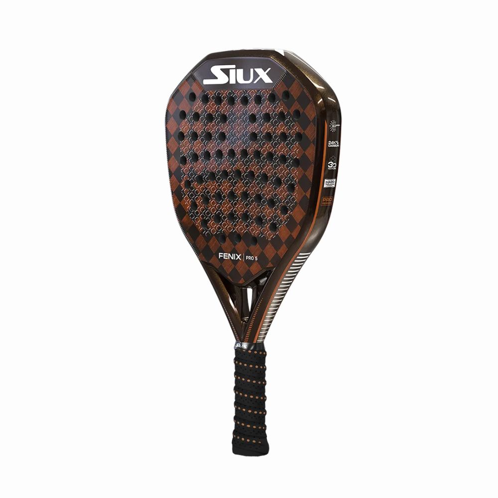 La nueva Siux Fenix Pro 5 es el modelo elegido por Álex Chozas para la temporada 2025. Se trata de una pala de pádel profesional diseñada para jugadores que hacen del remate y la potencia su principal arma. Con su formato de diamante y balance alto, está enfocada a maximizar la fuerza y la velocidad en cada golpe, permitiendo dominar el juego aéreo con total contundencia.