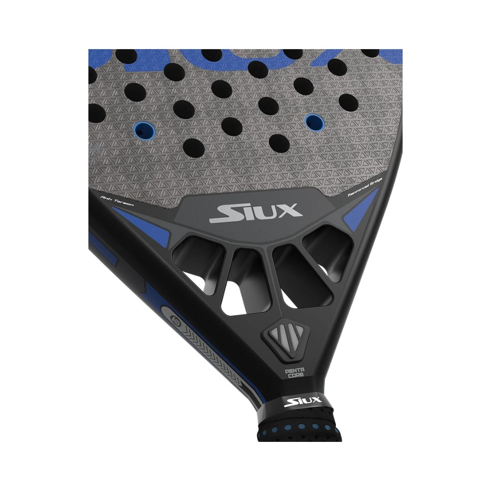 Es una pala con cuerpo en forma de diamante para los jugadores atacantes en pista. Si eres un jugador de nivel avanzado o profesional con una técnica de ataque esta es tu pala.Su forma le da un balance alto que favorece a los golpes de potencia y ataque. Con caras hechas en carbono 24K TexTreme y núcleo de EVA Soft. Pala de la colección Master Series de Siux Esta pala con forma de diamante se construye con un tubular resistente y duradero de carbono 100%. Las caras de esta pala se han hecho con 24.000 hilos de fibra de carbono por franja. Las caras carbono 24K TexTreme de Sioux tienen un acabo muy flexible y blanco.El núcleo de la pala también es blando. Se consigue con la goma EVA Soft. Una goma con una densidad baja que absorbe el impacto y se amolda a la forma de la pelota.