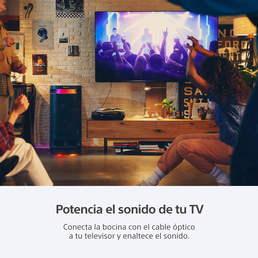 - Potencia el sonido de tu tv: Conecta la bocina con el cable óptico a tu televisor y enaltece el sonido