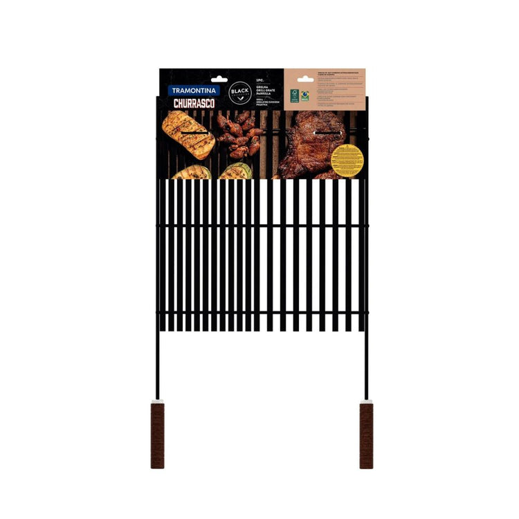Si como parrillero le gusta variar y llevarle a sus invitados diversas opciones, como legumbres asadas y carnes en diferentes cocciones, la parrilla Tramontina Churrasco Black en acero al carbono nitrocarburado con mangos de madera es perfecta. Fabricada en acero al carbono nitrocarburado con un exclusivo proceso Durprotect, posee más resistencia a la abrasión y reduce la posibilidad de corrosión. De este modo, ofrece una mayor vida útil. Puede ser expuesta a altas temperaturas y es plana. La mitad de su área útil posee barras próximas y la otra mitad barras más espaciadas. Estas características le permiten preparar simultáneamente diversos alimentos. ¡Su asado ya no será el mismo con la Parrilla Tramontina!