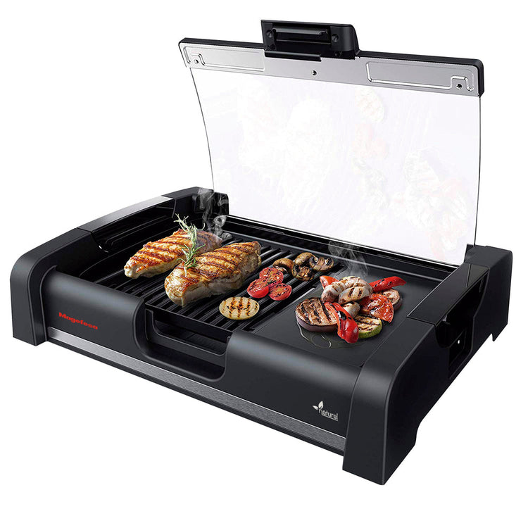La Parrilla Eléctrica Naturel de Magefesa es ideal para disfrutar de deliciosas preparaciones asadas en cualquier lugar de forma práctica y sencilla. Con su potencia de 1650 W, superficie de cocción antiadherente grande y temperaturas variables, podrás asar, calentar, cocinar o tostar tus alimentos favoritos sin necesidad de encender fuego ni ensuciarte con carbón. Además, su bandeja de goteo es apta para lavavajillas, lo que facilita la limpieza después de cada uso.
