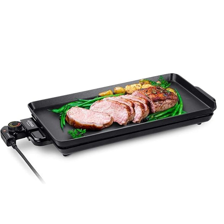 Cocinarás fácil y rápidamente todo tipo de alimentos gracias a sus 2500W de potencia.Esta plancha de cocina cuenta con una gran superficie de cocción (49x27cm), para que puedas cocinar varios alimentos a la vez. Ningún alimento se pegará, ya que cuenta con 3 capas de antiadherente (libre de PFOA), lo que hace que la limpieza sea de lo más sencillo, ¡y es apta para lavavajillas.