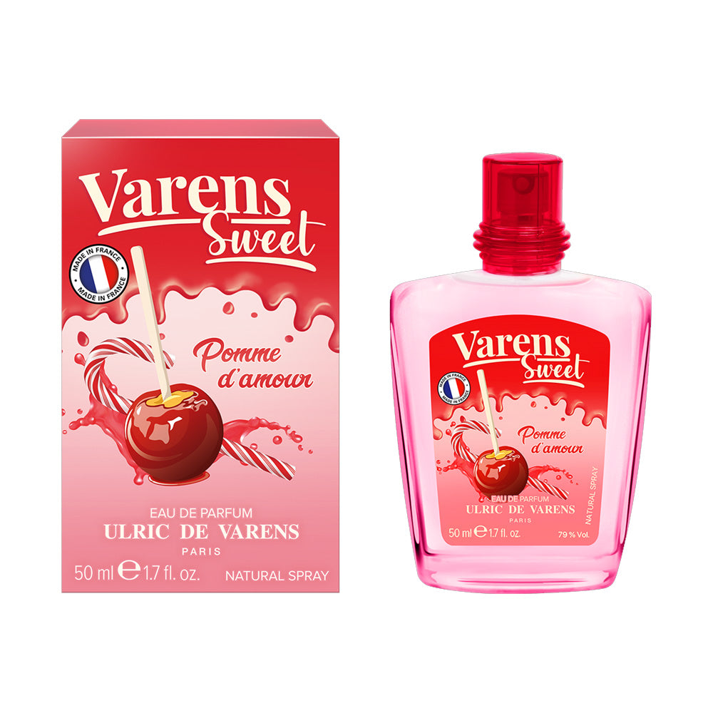 Pomme d’Amour” significa literalmente “manzana del amor” en francés. Este perfume evoca ese dulce típico de ferias y carnavales: la manzana caramelizada roja brillante, crujiente por fuera y jugosa por dentro. Representa juventud, alegría, diversión y un toque de travesura gourmand.