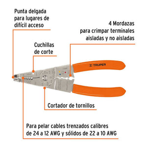 Pinza 8 pela cables 24 a 12 AWG Truper