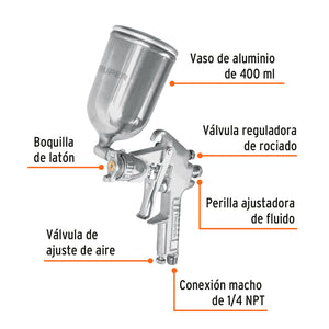 - Serie 400 tecnología LVMP (Bajo volumen / Mediana presión) ideal para usos generales a una velocidad óptima de aplicación