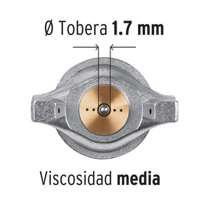 La Pistola de Aluminio Truper de 1.7 mm con Vaso Aluminio es una herramienta de gran calidad y precisión para pintar superficies de todo tipo con un acabado profesional!
