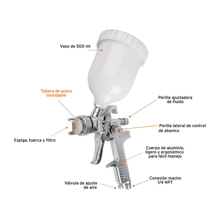 Pistola de Aluminio Truper de 2 mm con Vaso Plastico gravedad HVLP