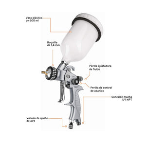 - Serie 400 tecnología HVLP (Alto Volumen / Baja presión) ideal para acabados finos, con máximo rendimiento de pintura y mayor control de aplicación