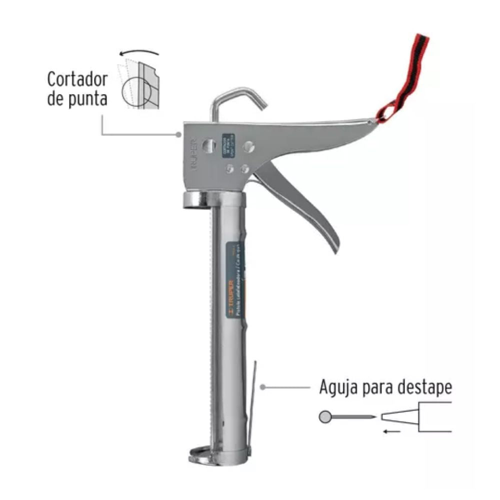 La Pistola Calafateadora con Cremallera Truper 101400 es la elección ideal para sellar de manera precisa y eficiente todo tipo de juntas y fisuras. Diseñada con la calidad y durabilidad que caracteriza a la marca Truper, esta herramienta es imprescindible para cualquier proyecto de sellado en el hogar, la obra o el taller.
