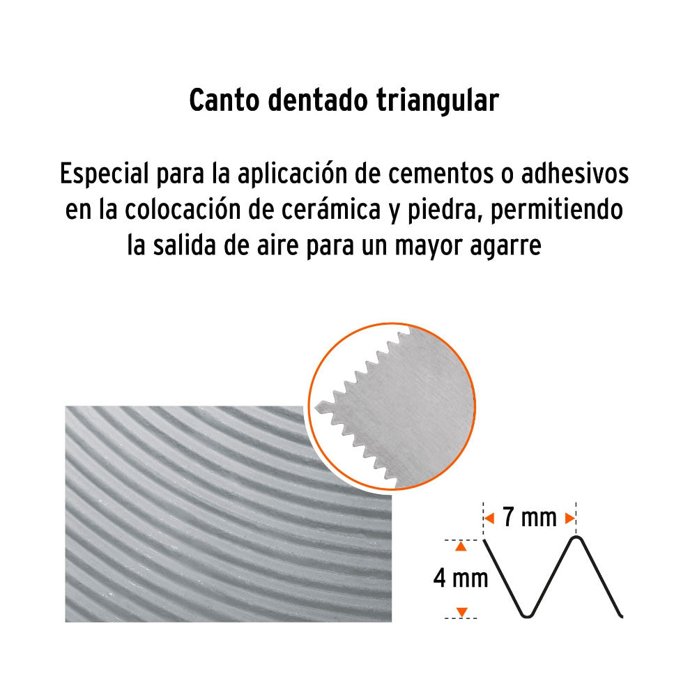 Especial para la aplicación de cemento o adhesivos en la colocación de cerámica y piedra, permitiendo la salida de aire para un mayor agarre y mayor duración