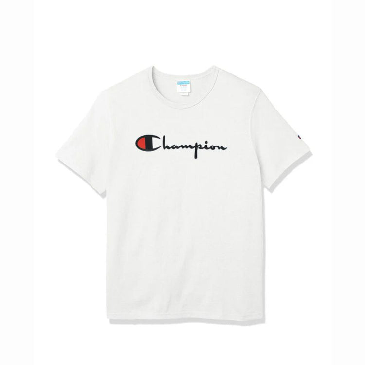 Polera Champion con manga corta. Logotipo de parche C en la manga y bordado en la parte superior central delantera.