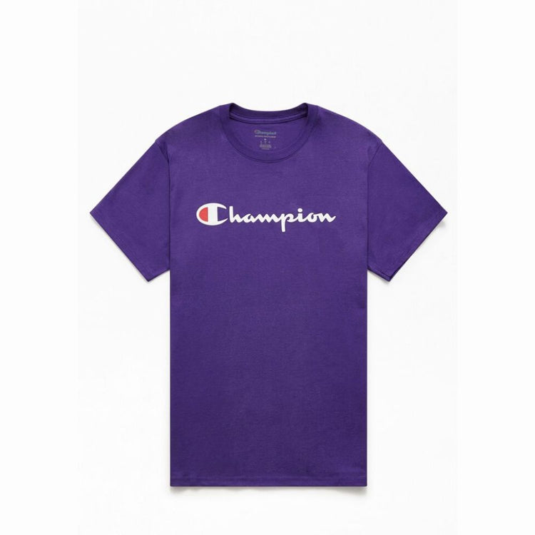 Polera Champion con manga corta. Logotipo de parche C en la manga y bordado en la parte superior central delantera.