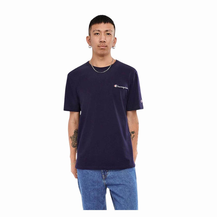 Polera Champion con logo pequeño bordado en la parte superior delantera, lado izquierdo del pecho.