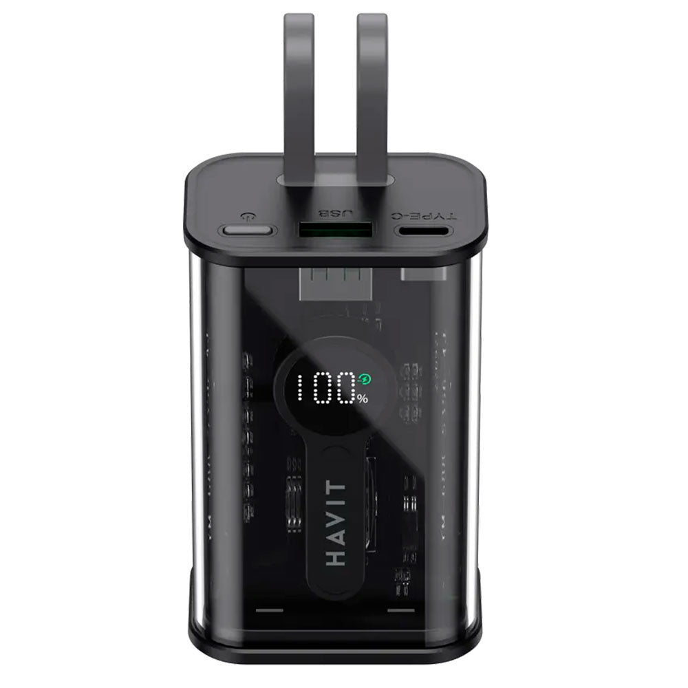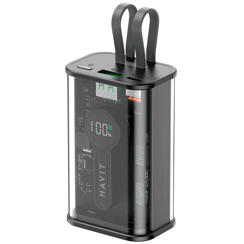 Powerbank Portátil Havit De 10.000 mAH Con Indicador Digital Carga Rápida De iPhone y Android Cables Incluidos