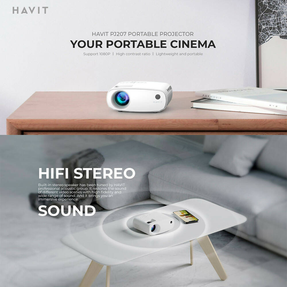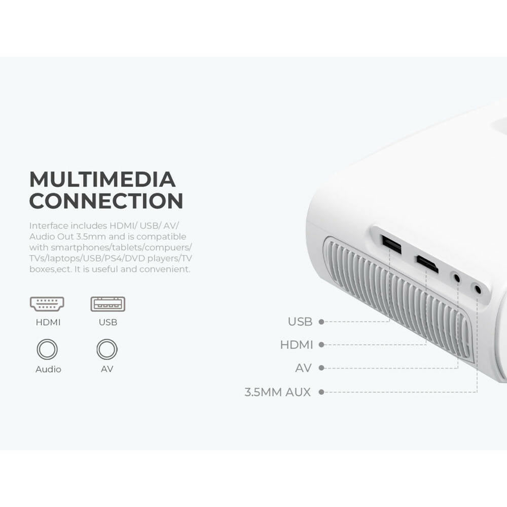 Viene con corrección de imagen y sonido estéreo HiFi, alta relación de contraste, sonido estéreo, bajo nivel de ruido, lámpara de larga duración, etc. Puede llevarlo con usted fácilmente y disfrutar de maravillosas películas y videos en cualquier momento y en cualquier lugar.