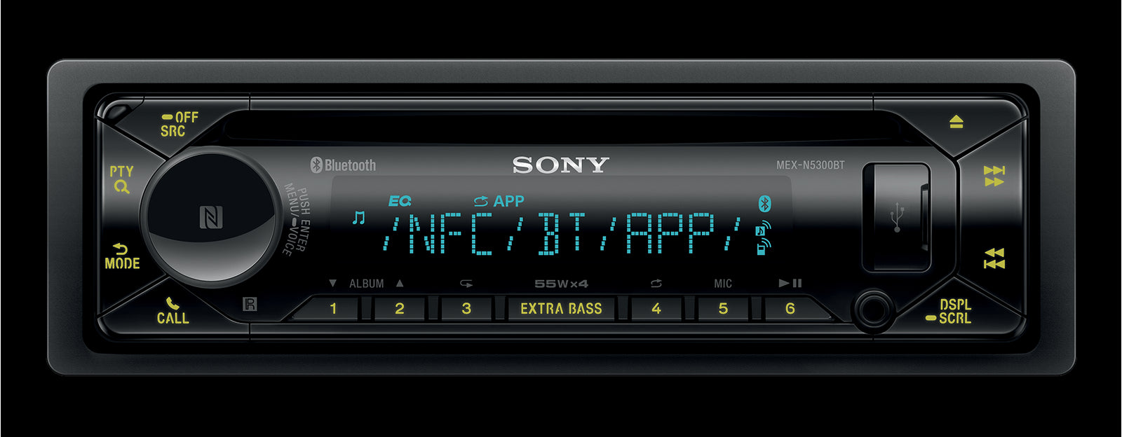 Disfruta el doble de la conectividad y del doble de colores en tu auto gracias al receptor de CD con Bluetooth® MEX-N5300BT. El Bluetooth doble permite conectar dos smartphones de forma inalámbrica. El segundo terminal se usa exclusivamente para llamadas con manos libres. El iluminador bizona te permite escoger entre 35.000 colores para combinarlo con los colores del interior de tu auto. Conexión Bluetooth doble con emparejamiento NFC One-Touch
