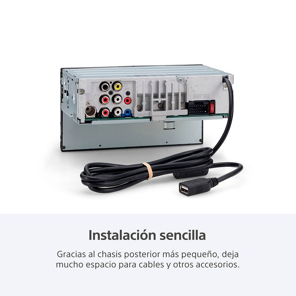 Una pantalla táctil antirreflectante de 17.1 cm (6.75 pulgadas) con duplicación del smartphone mediante WebLink® que se opera con dispositivos Android y iOS, y tiene una instalación sencilla con chasis posterior de un solo DIN.